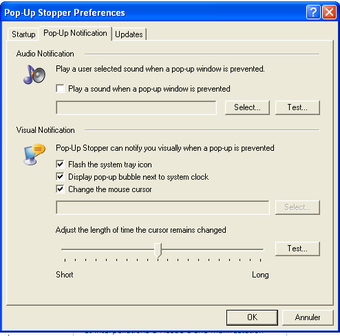 Discrète, une icône placée dans la zone de notification système permet d'accéder aux préférences du logiciel. Vous pouvez y décider de le lancer ou non au démarrage de Windows, et régler les notifications visuelles et/ou sonores de blocage de pop-up.